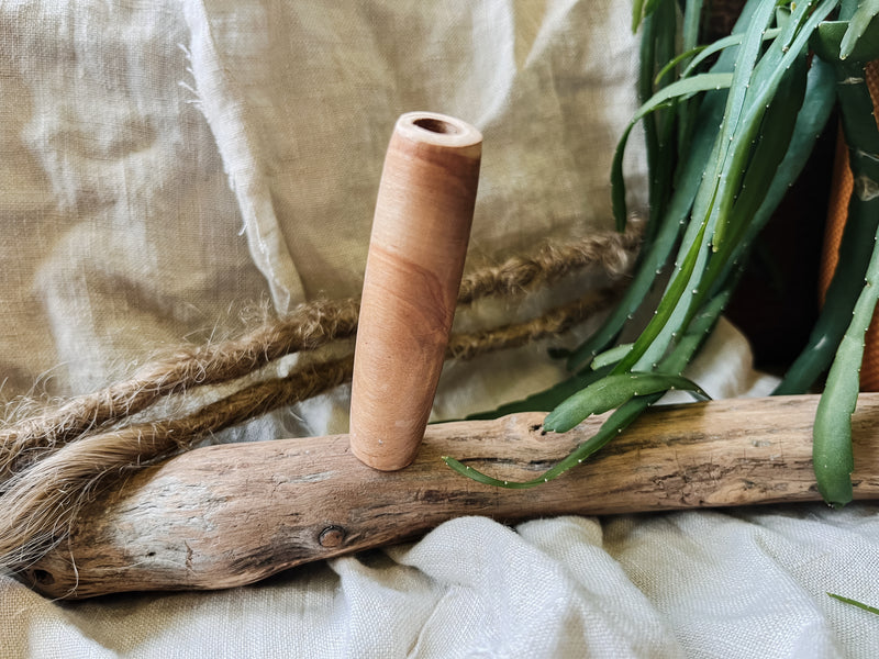 Deze handgemaakte dreadbead is gemaakt van natuurlijk hout in een lichte, blanke tint met een subtiel zichtbaar lijnenspel.